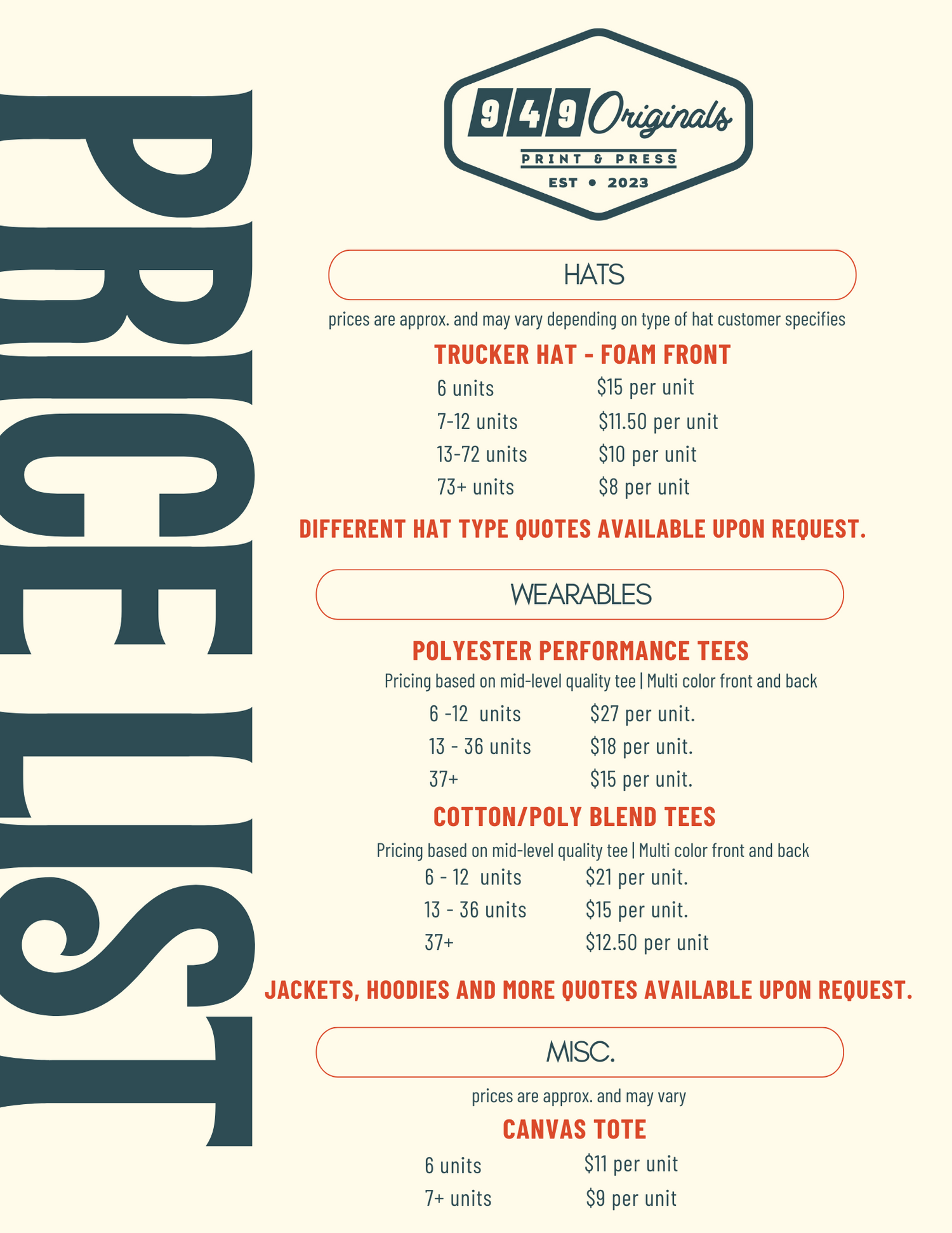 We aim to keep our prices and products straightforward while maximizing the impact of YOUR branding.